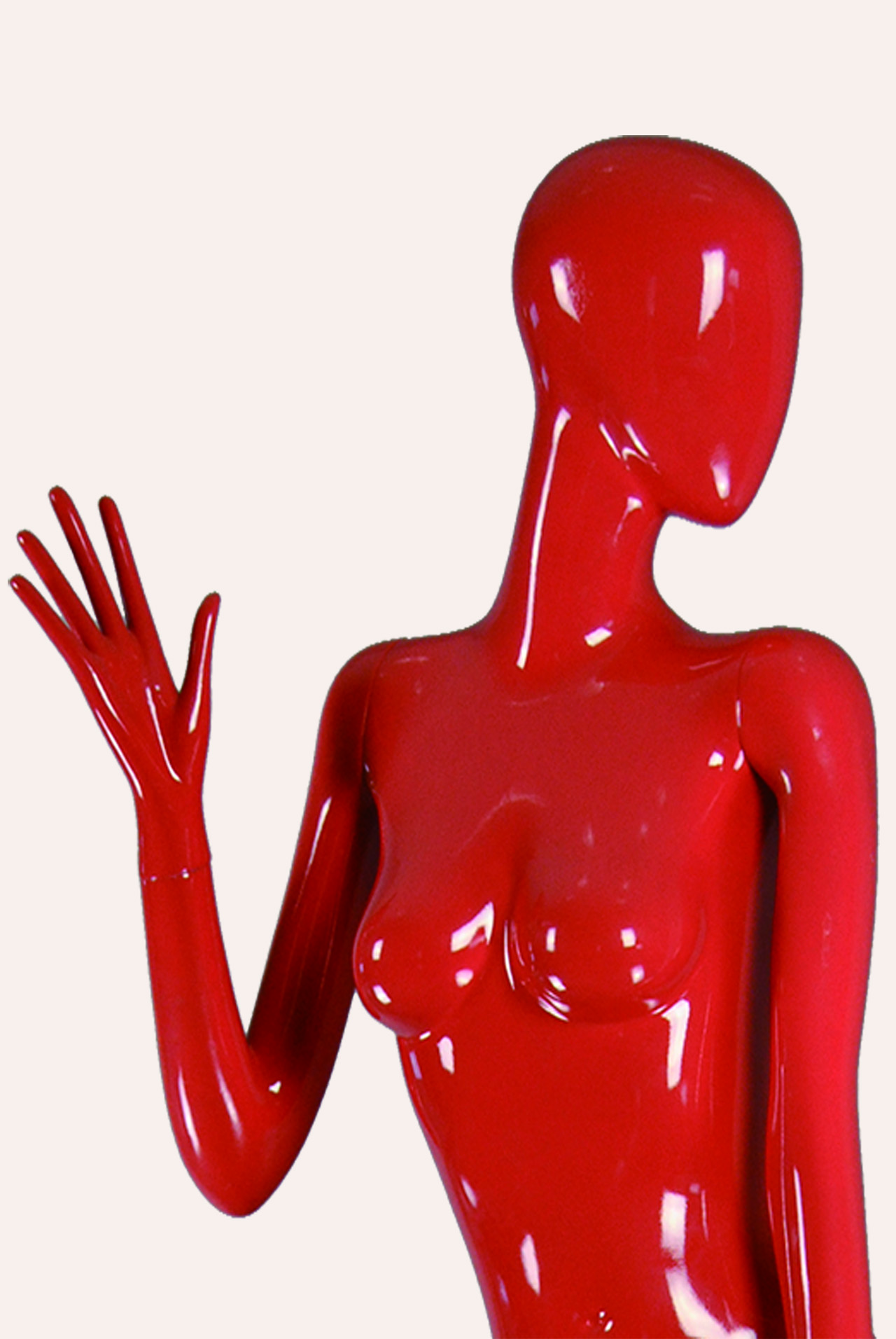 模特本体为玻璃钢材质,表面可根据您的要求做成各种颜色,可有做成高光、哑光等。