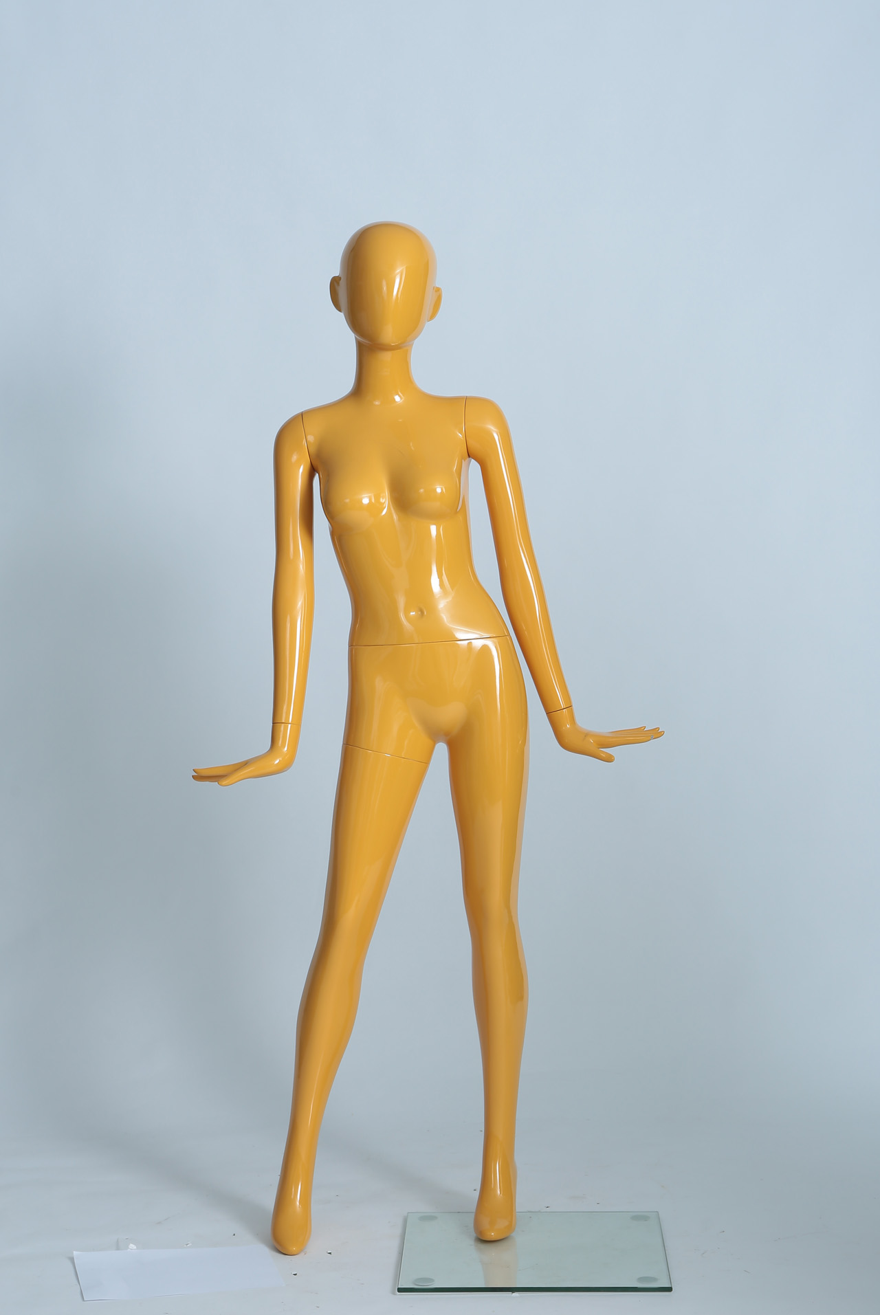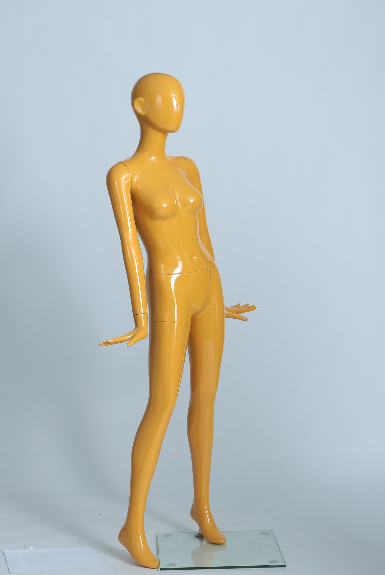 模特本体为玻璃钢材质,表面可根据您的要求做成各种颜色,可有做成高光、哑光等。
