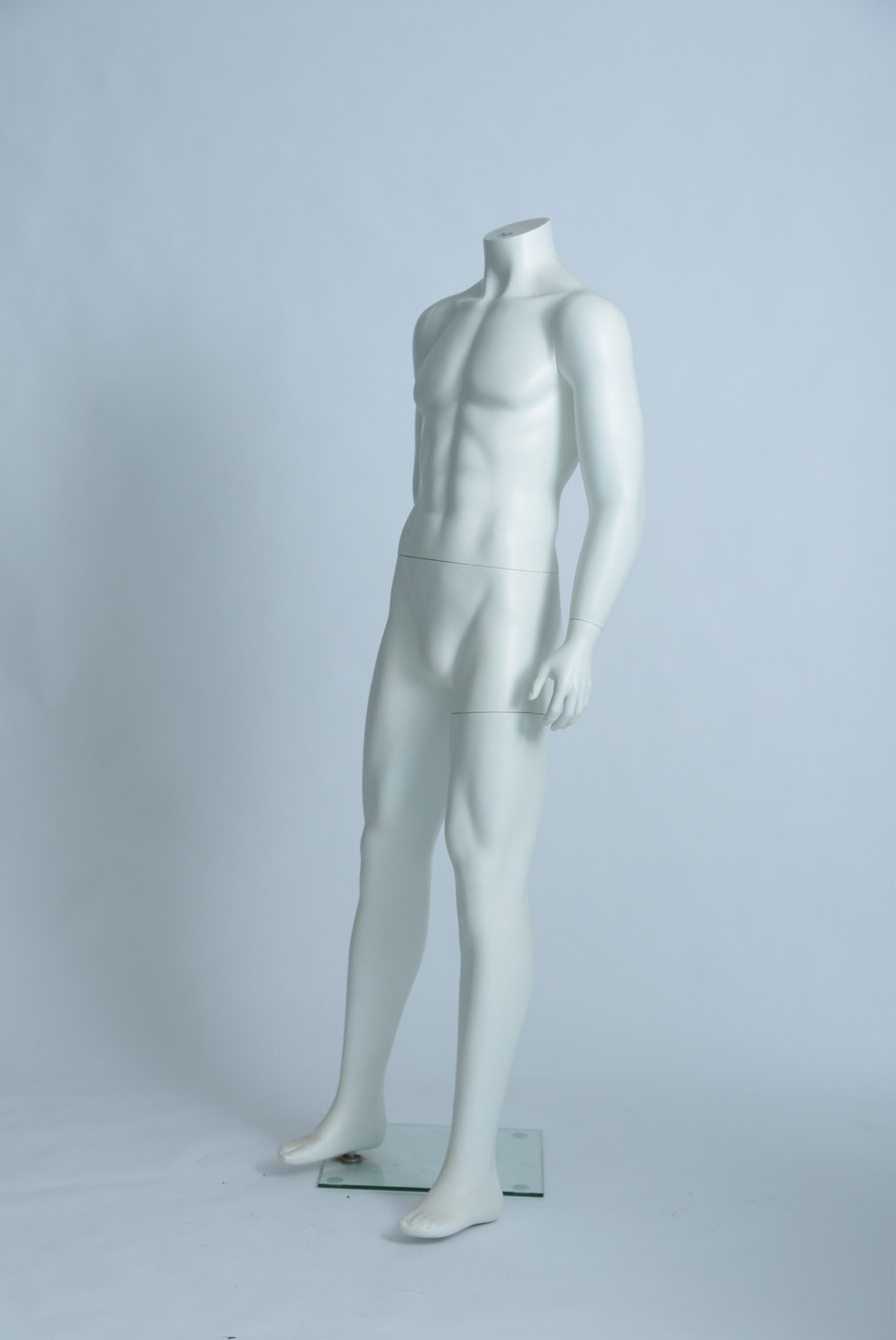 模特本体为玻璃钢材质,表面可根据您的要求做成各种颜色,可有做成高光、哑光等。