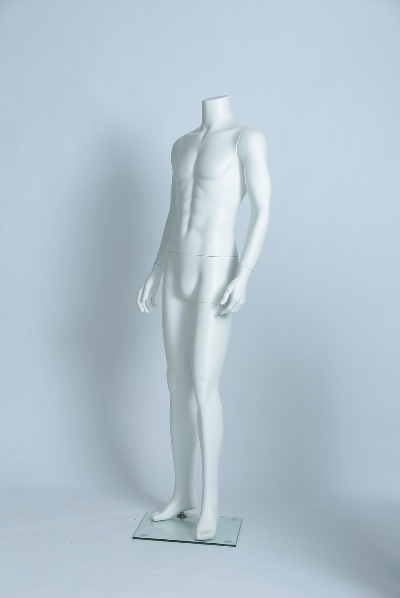 模特本体为玻璃钢材质,表面可根据您的要求做成各种颜色,可有做成高光、哑光等。