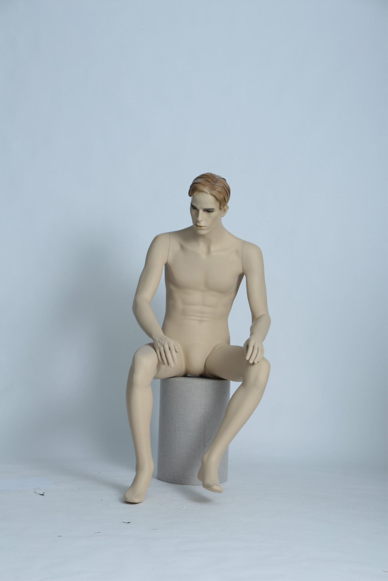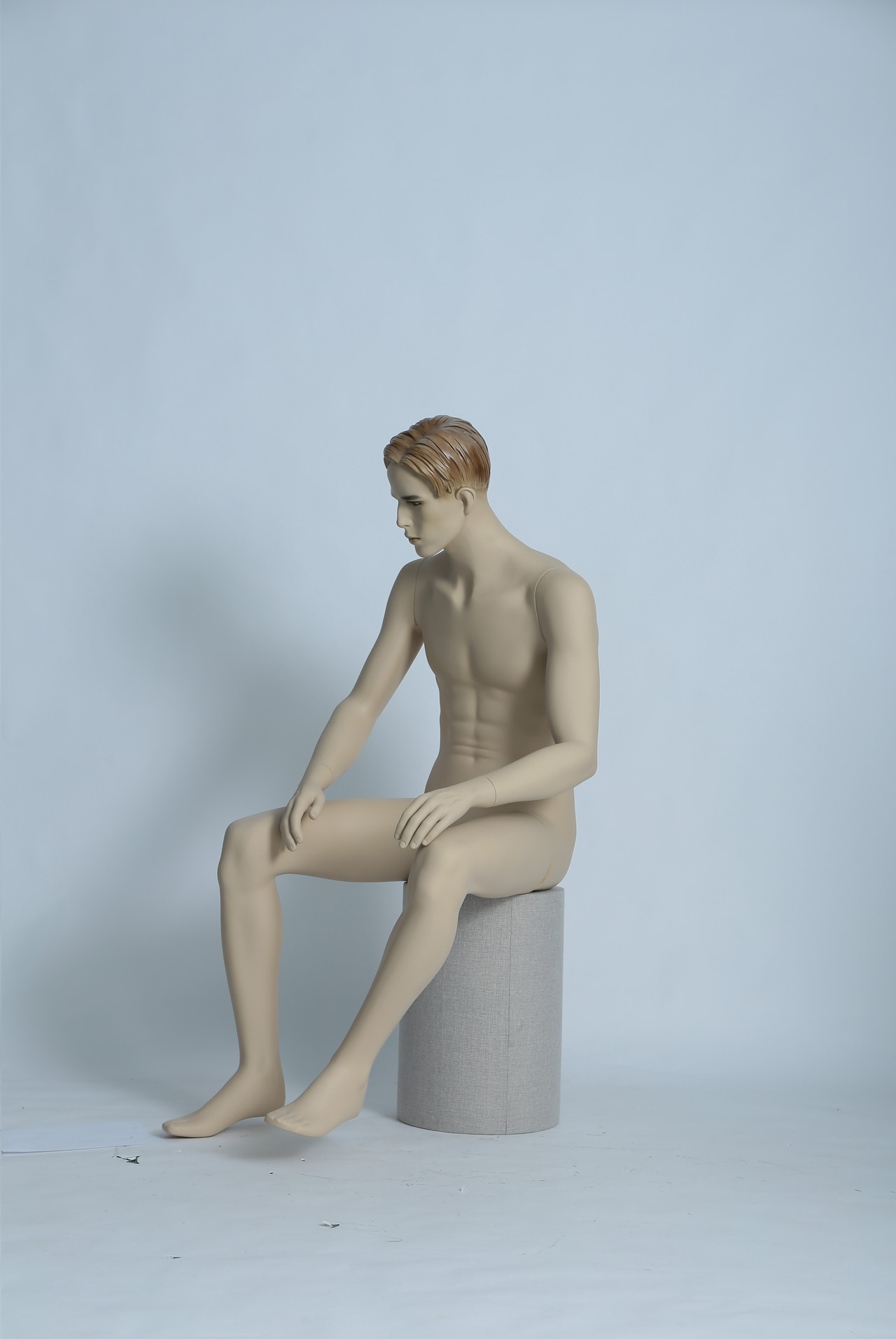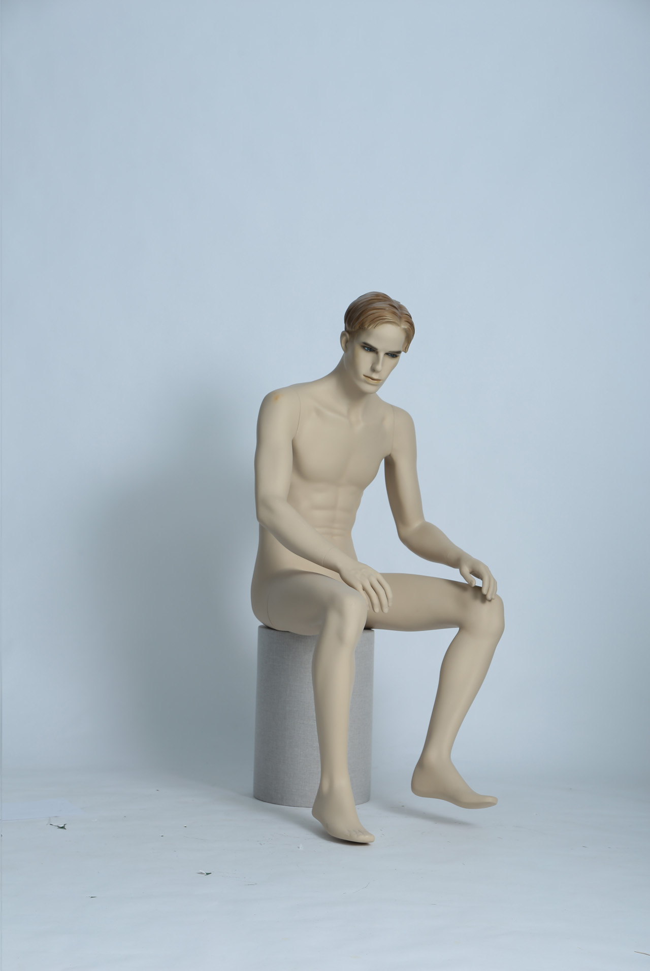 模特本体为玻璃钢材质,表面可根据您的要求做成各种颜色,可有做成高光、哑光等。