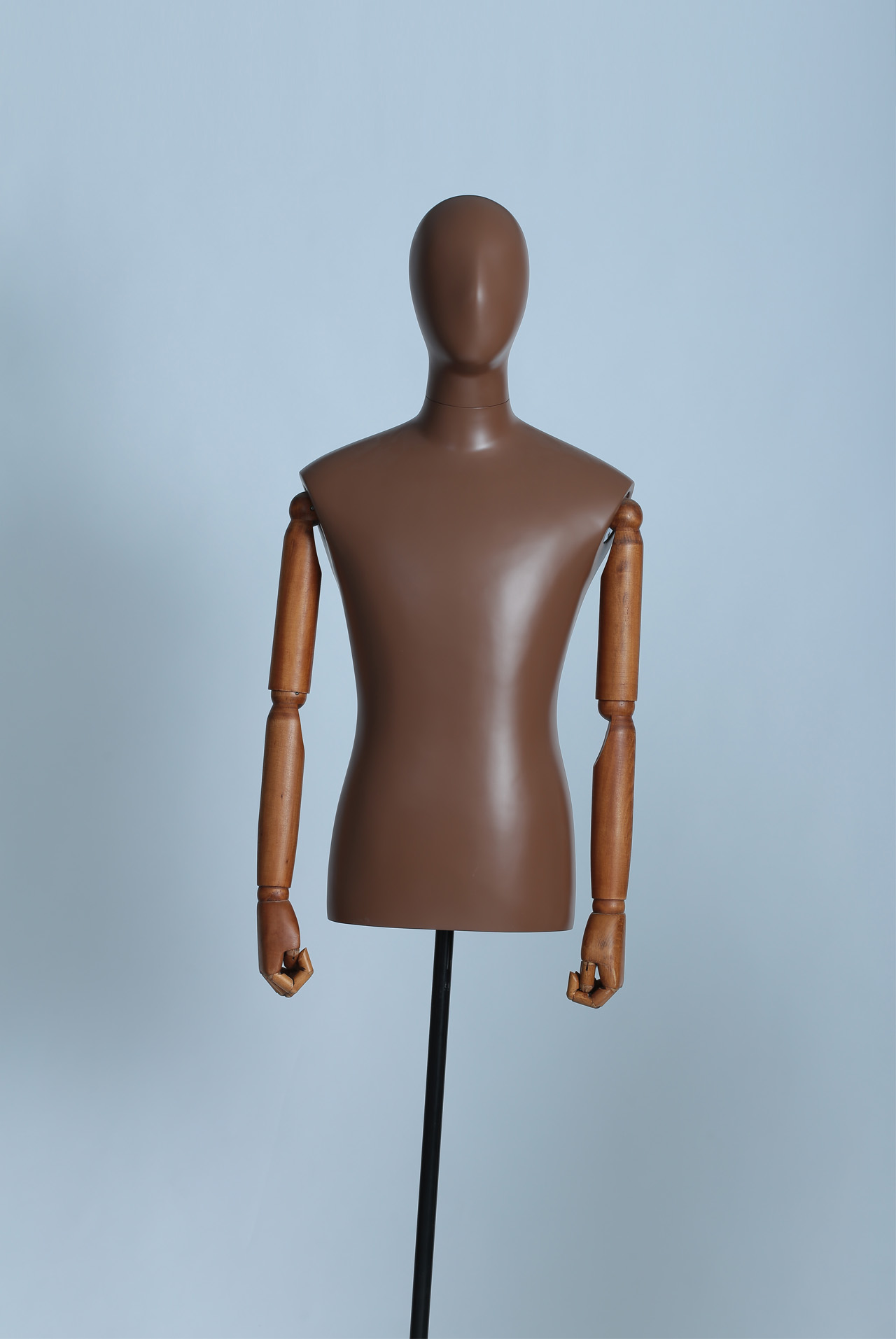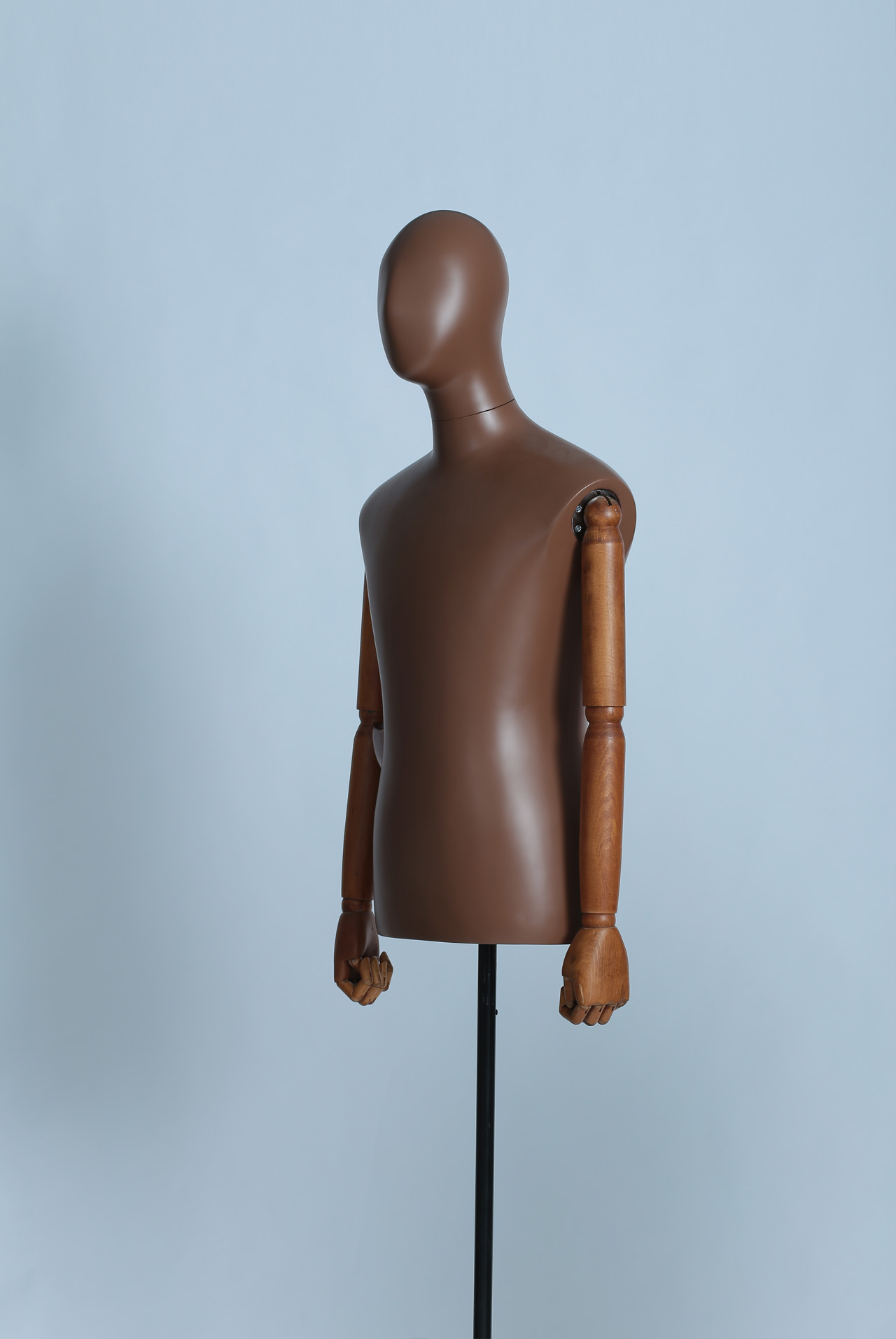 模特本体为玻璃钢材质,表面可根据您的要求做成各种颜色,可有做成高光、哑光等。